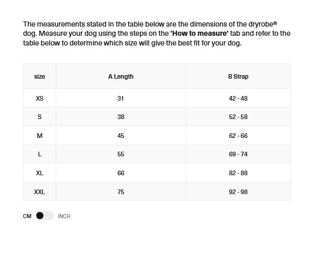 With 6 sizes available and adjustable straps, there is a dryrobe® to fit most dogs, so they can stay warm and dry in wet and cold conditions.